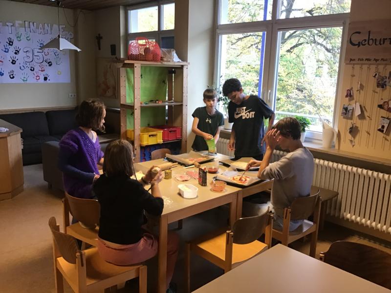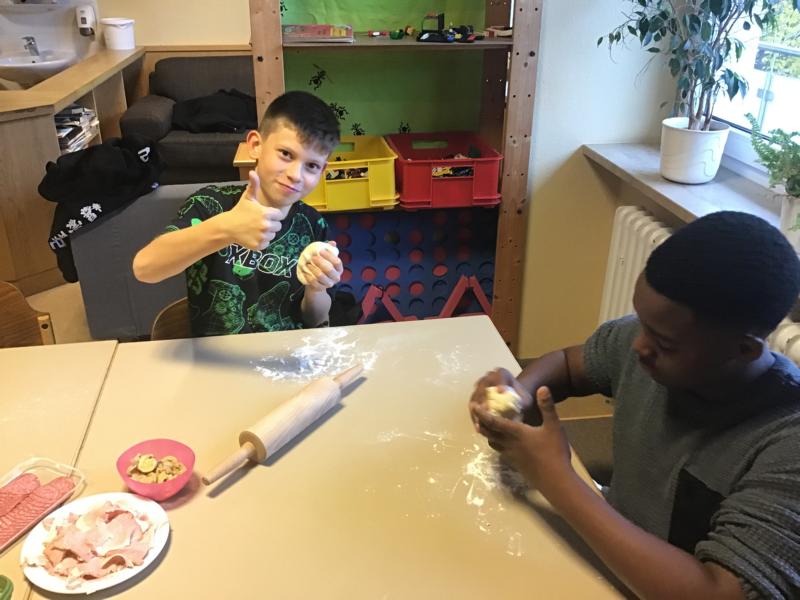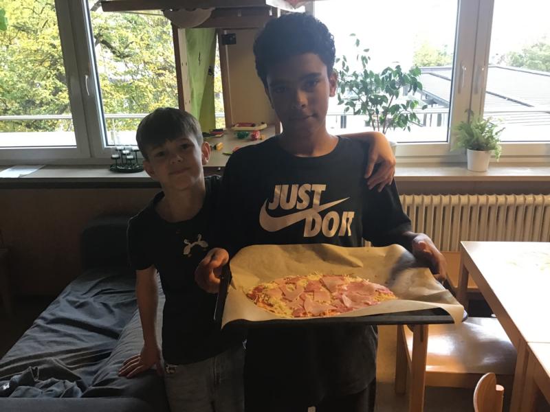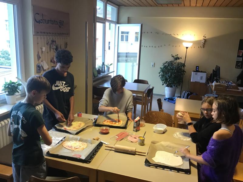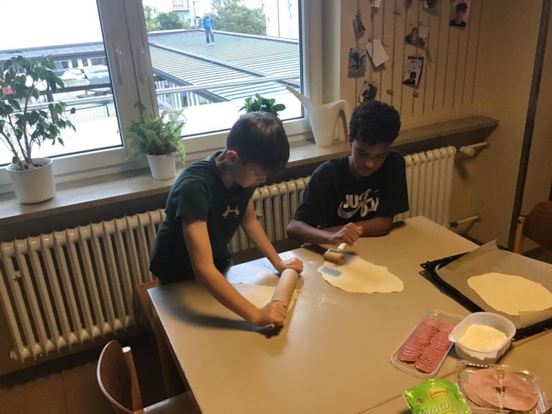 Die Kinder besprachen gemeinsam ihre Wünsche für den Belag. Diese wurde anschließend eingekauft und von Salami bis Thunfisch wurden alle Wünsche erfüllt.