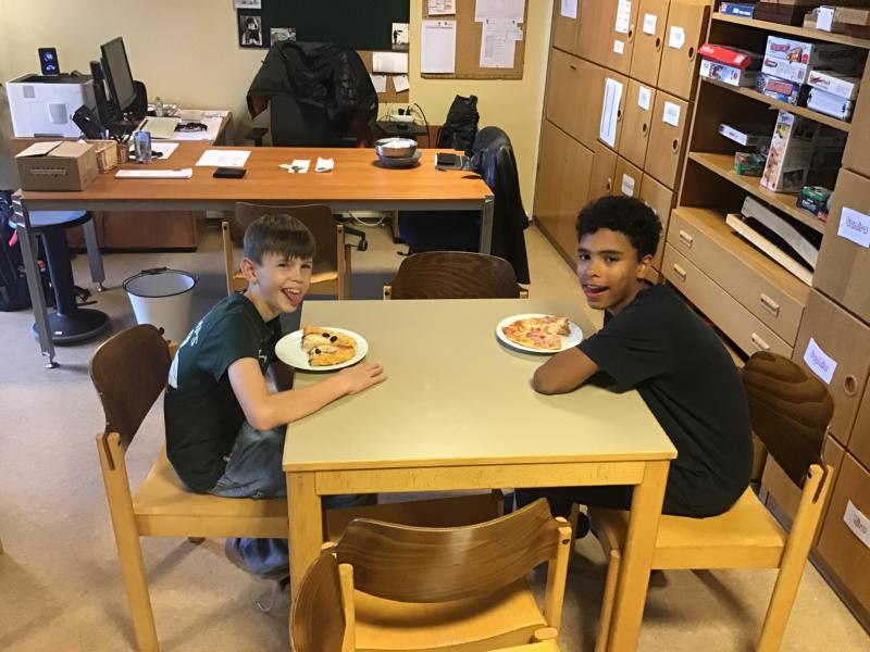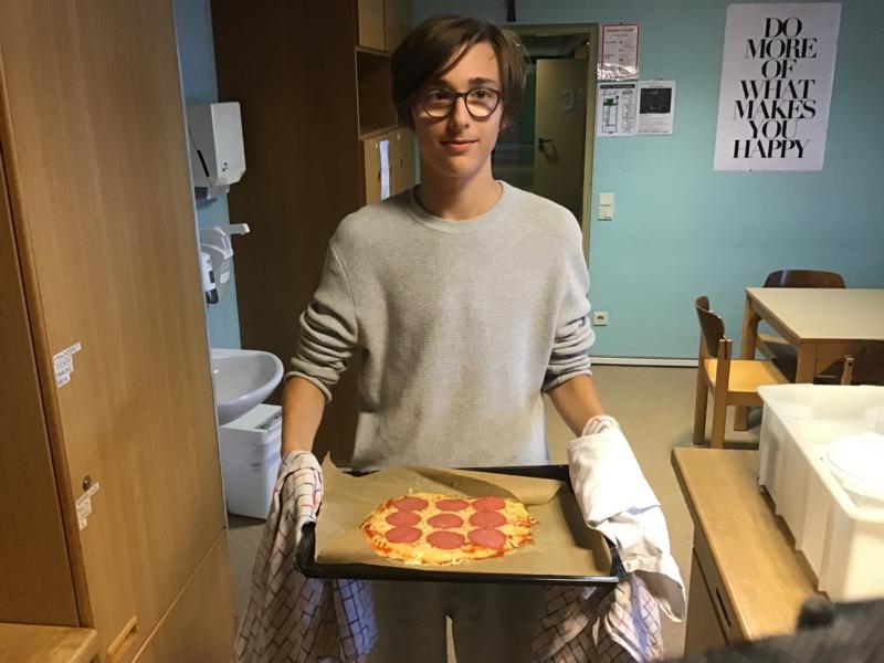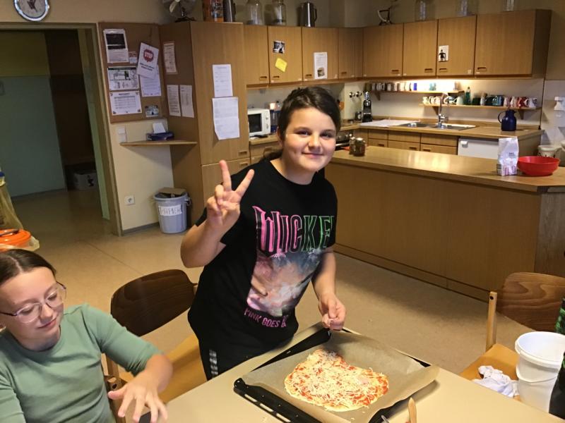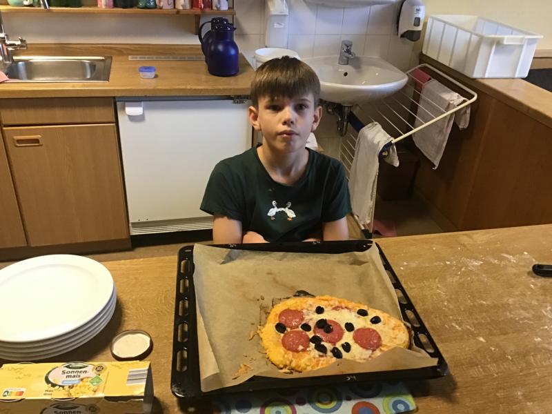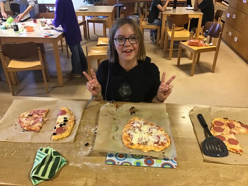 Nachdem jede/r seine Pizza belegt hatte und diese im Ofen gebacken wurde, ließen sich die Kinder ihre Pizzen schmecken.