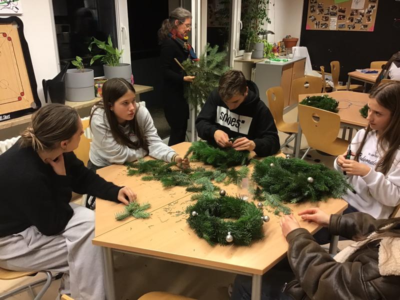 Am Mittwoch, den 24.11.2025 haben Jugendliche der Gruppe 40 für sich zuhause einen Adventskranz gebunden. Ebenso wurde einer für die Gruppe hergestellt.