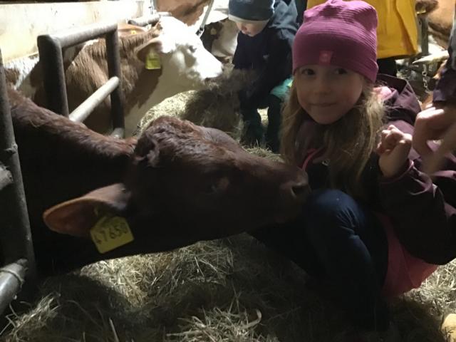 Aber auch das Leben auf dem Bauernhof konnten die Kinder erfahren. Sie halfen beim Füttern der Kühe, kuschelten mit den Kälbchen und hatten viel Spaß beim fangen der Hühner und einsammeln der Eier. Müde, aber voller neuer Erfahrungen rund um den Apfel wurden sie von den Eltern am Hauptbahnhof empfangen.